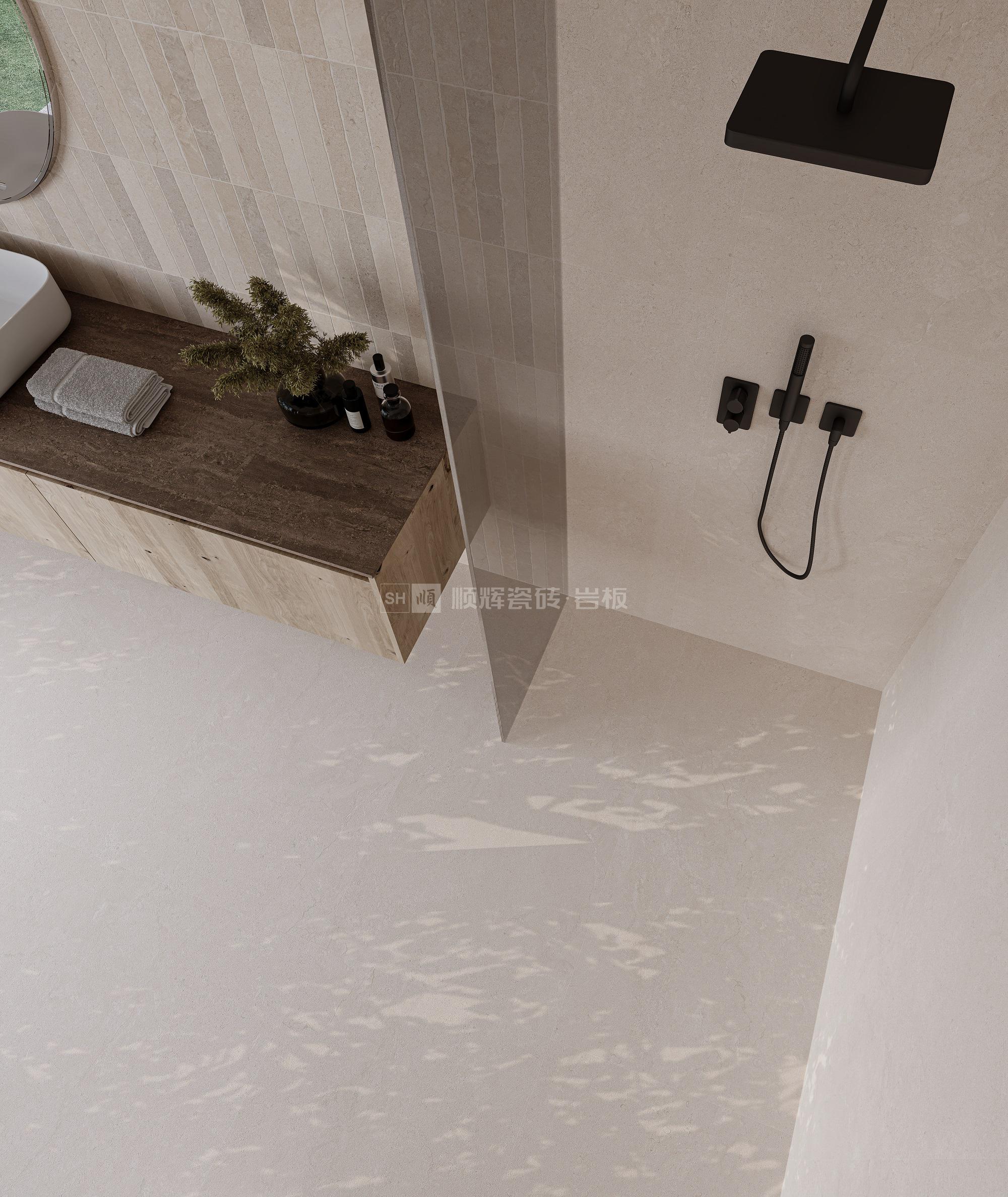以意大利托斯卡納優(yōu)質(zhì)萊姆石的紋理為設(shè)計靈感,淺米、暖黃、中咖3個色調(diào)的豎長條形拼貼而成,如鋼琴上的琴鍵跳躍,極具動感。