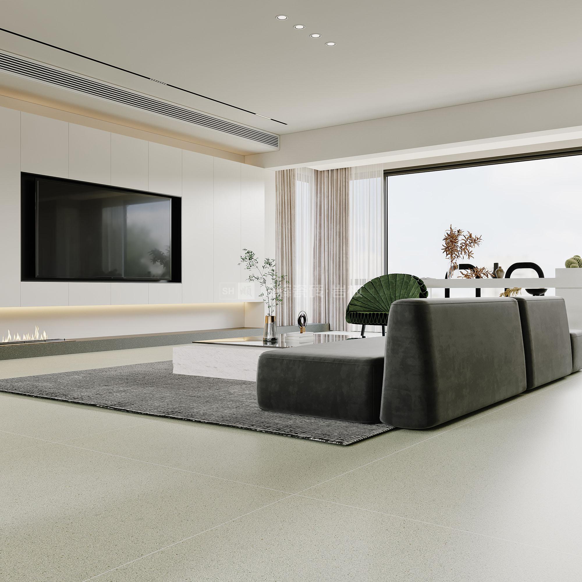 暖灰,沒有強沖擊力的色調,但給人以安靜的空間氛圍,搭配星星點點的肌理紋路,仿佛夜空中灑落的星光,瞬間點亮了整個空間。