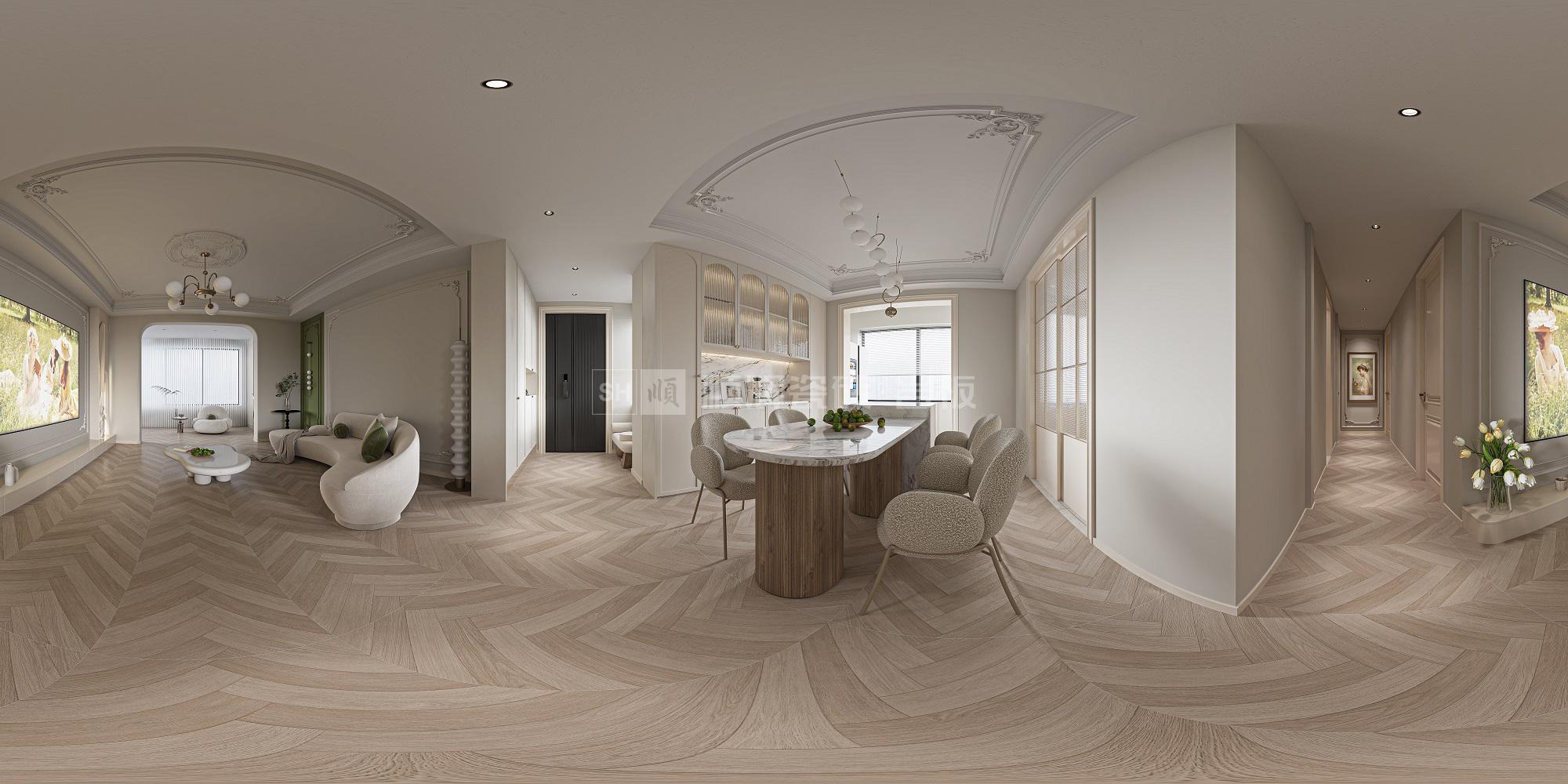 小規(guī)格人字拼,讓空間有了更多的律動,彰顯出獨具一格的視覺美學;原木的張力和沉淀,米咖色的柔和與溫馨,表現出一種返璞歸真的暖靜氛圍。