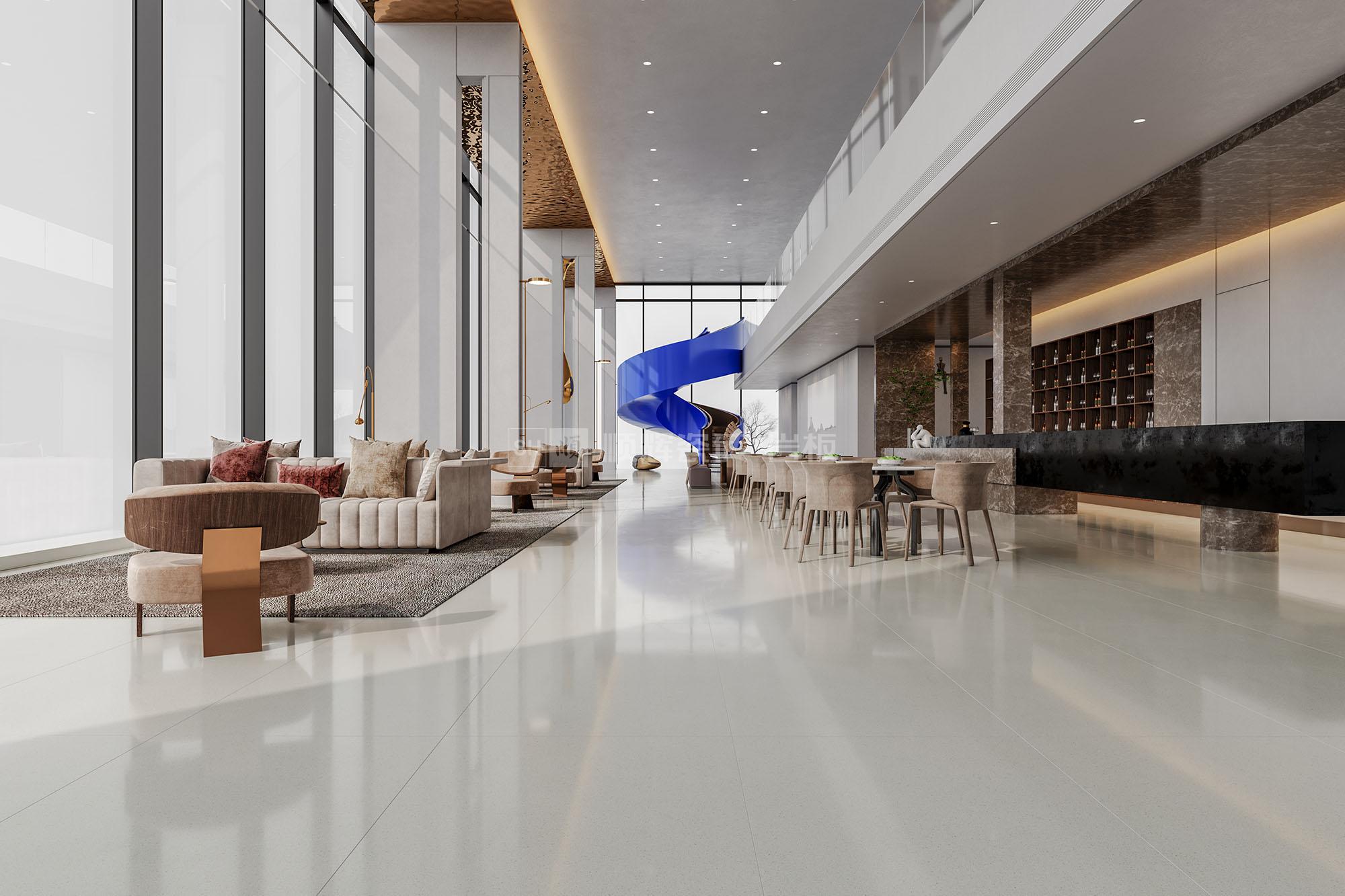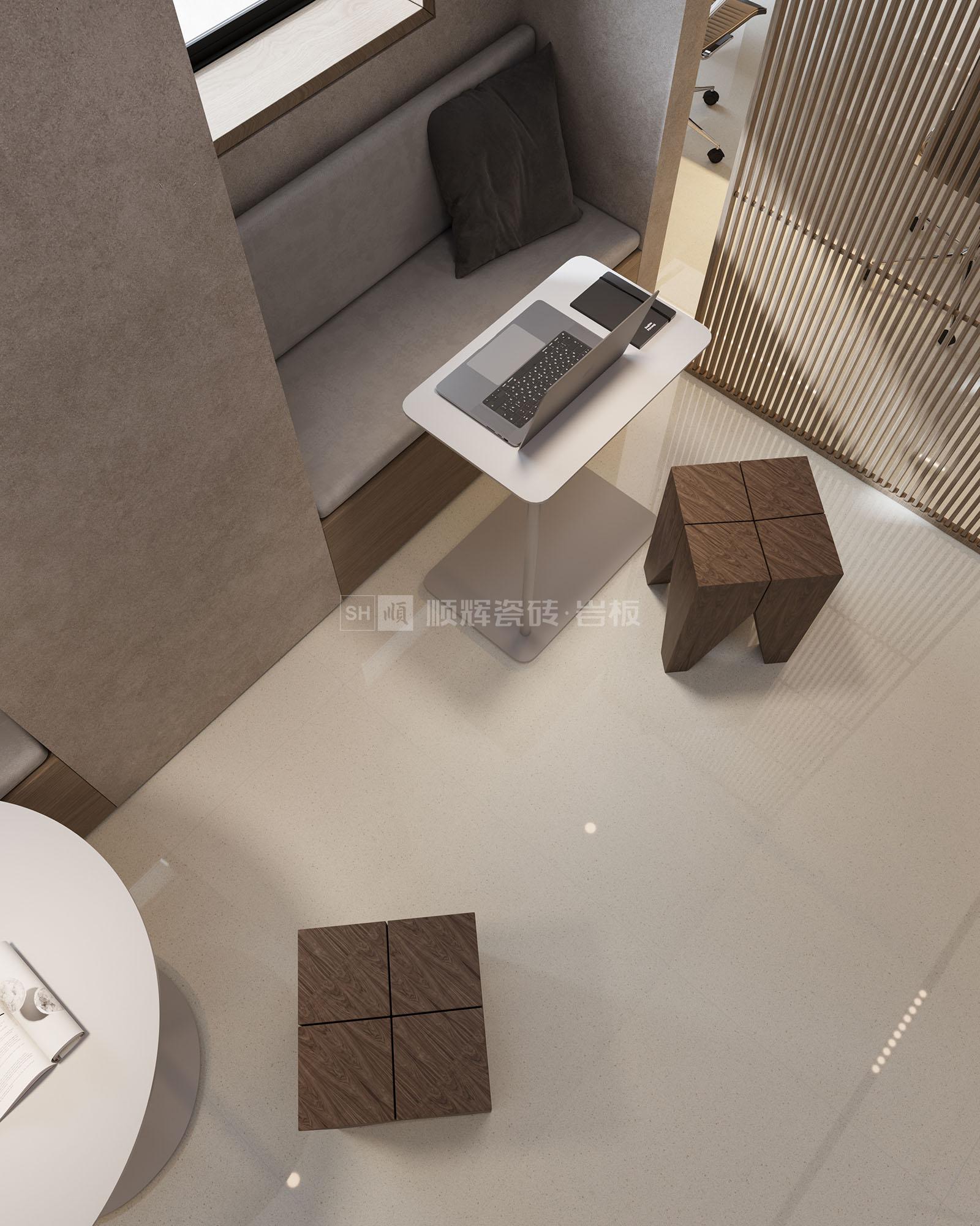 暖灰,沒有強(qiáng)沖擊力的色調(diào),但給人以安靜的空間氛圍,搭配星星點點的肌理紋路,仿佛夜空中灑落的星光,瞬間點亮了整個空間。