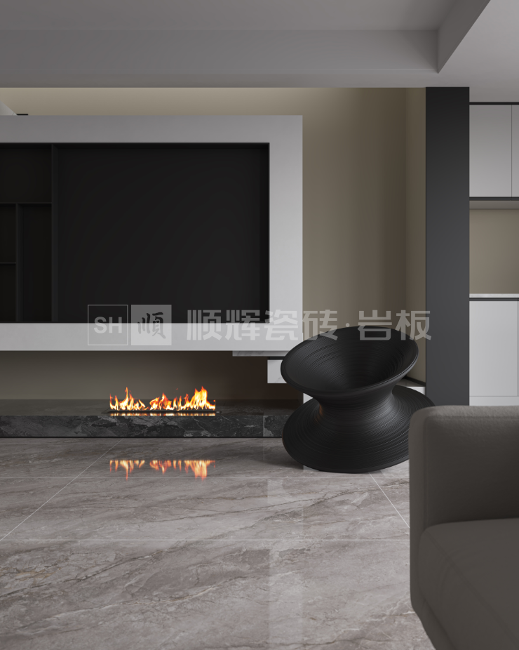 中灰的底色上,粗細不一的黑褐色紋理自由生長,粗獷如山脊溝壑,細微如似小溪潺潺,獨有的線條美感將空間奢雅揮散開,透露出純凈大自然的美麗風景線。